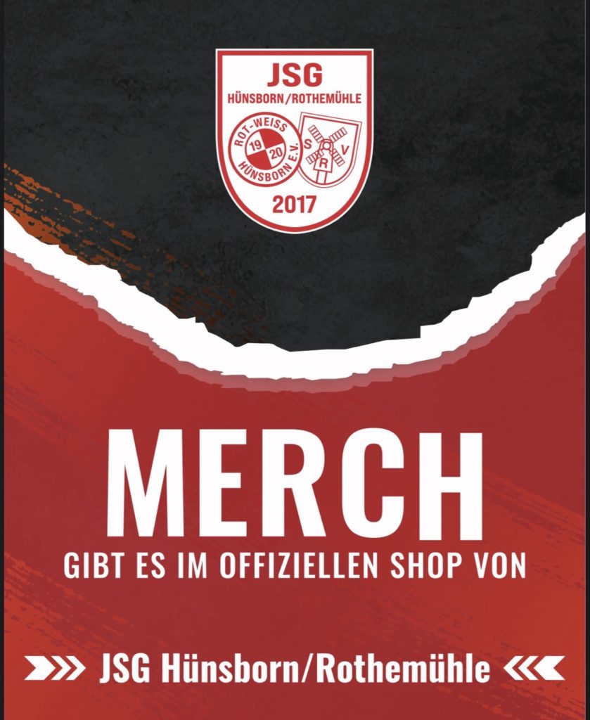 Wir freuen uns mitteilen zu können, dass unsere Jugendabteilung einen eigenen Fanshop bekommen hat. Alle Artikel, die wir als Verein Rot-Weiß Hünsborn anbieten, gibt es nun auch mit dem JSG-Logo erhältlich.